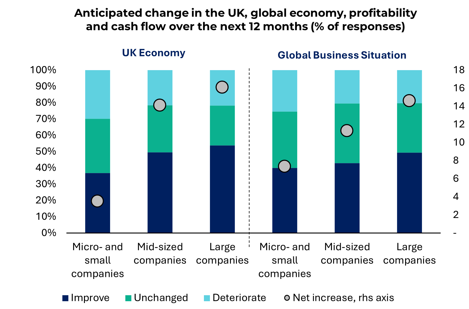 Más de un tercio de las empresas esperan que los retrasos en los pagos disminuyan en 2026, impulsadas por la mejora de la confianza económica y las expectativas de una mayor rentabilidad y flujo de caja. Sin embargo, este optimismo es desigual, ya que las microempresas y las pequeñas empresas siguen siendo más escépticas: el 66 % cree que la economía del Reino Unido se deteriorará aún más o se mantendrá sin cambios en 2026, y varios sectores siguen enfrentándose a riesgos estructurales, como la volatilidad de los tipos de interés, las amenazas cibernéticas y las interrupciones en la cadena de suministro.